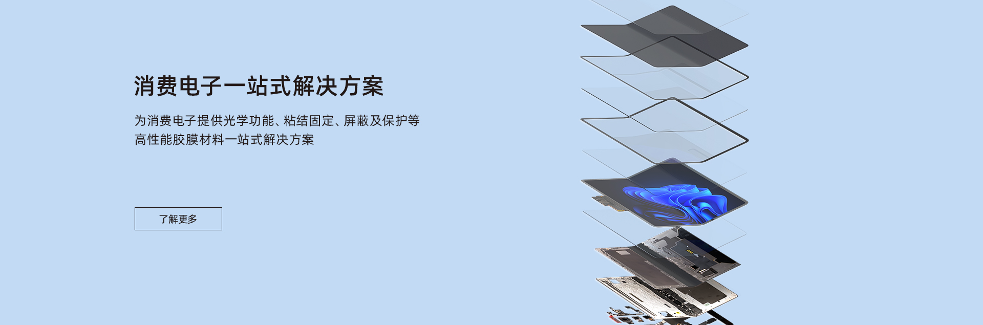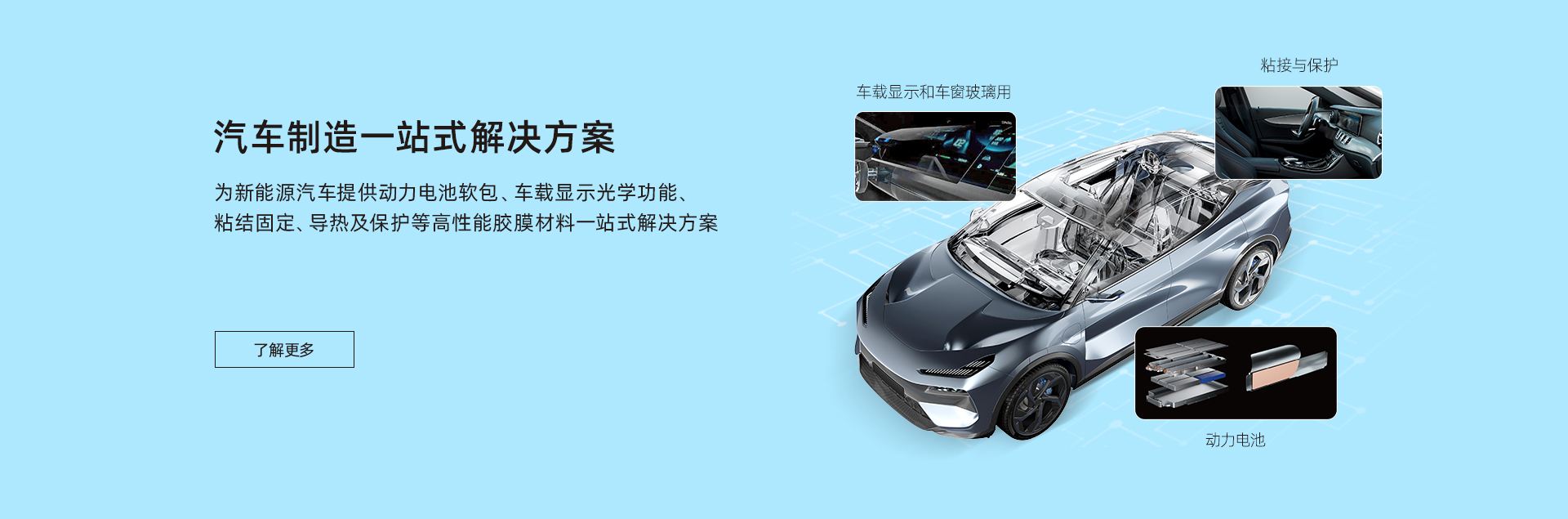 致力于為汽車制造、消費電子、智慧顯示端口等行業(yè)客戶提供包括新能源材料、電子功能材料、光電顯示材料、有機硅材料在內(nèi)的產(chǎn)品研發(fā)、生產(chǎn)、銷售于一體化服務(wù),建立了專業(yè)的市場營銷與技術(shù)服務(wù)團隊,為客戶提供高性能膠膜材料一站式解決方案。